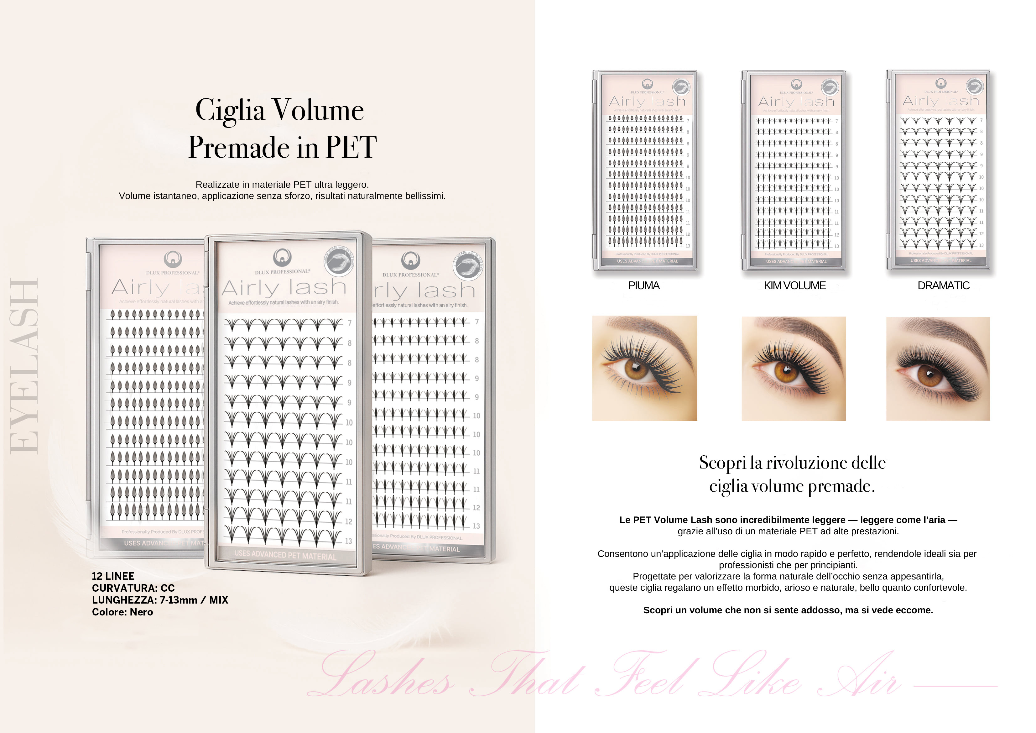 Le Kim Volume Lash sono incredibilmente leggere — leggere come l’aria — grazie al materiale PET ad alte prestazioni.